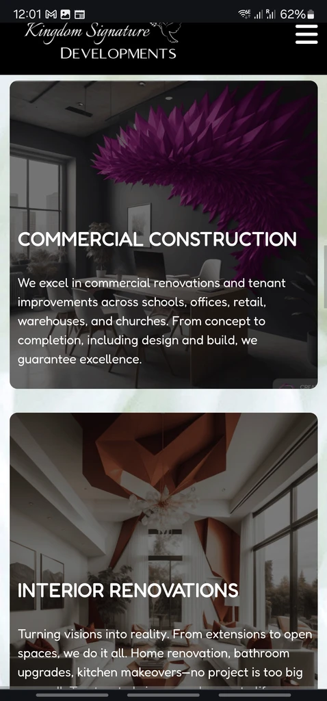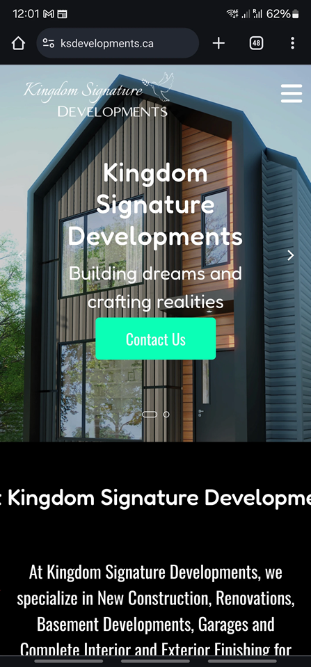 Explore the artistry of construction with our uniquely crafted website, where custom design and intuitive user experience converge to showcase the company's unparalleled projects. Step into a digital blueprint of excellence, meticulously designed to not only reflect the grandeur of their past endeavors but to guide users seamlessly through their comprehensive range of construction services. Our website design of Kingdom Signature Developments is a testament to precision engineering and a user-friendly interface, ensuring the journey through their portfolio is as remarkable as the websites we build.